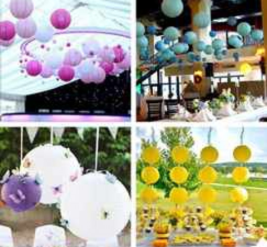 - Бумажные шары. Большие бумажные шары на металлическом каркасе напоминают фонари в Японском стиле. Они создаются в любом цвете, и найти их в магазине не составит труда.