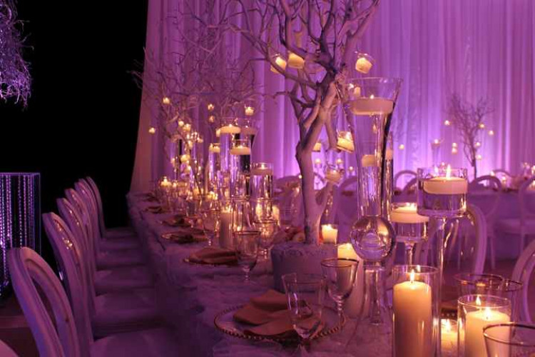 Вспомогательными средствами декора послужат свечи различных форм. Их можно поставить в металлические ажурные, керамические или стеклянные подсвечники и канделябры. Все зависит от стилистики события.