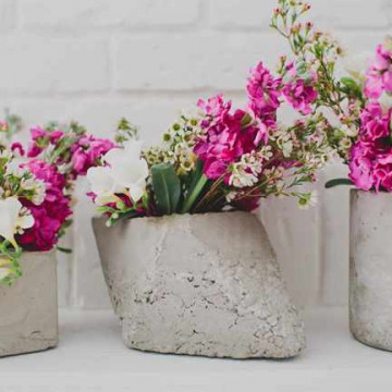 Серые, неуютные, грубые изделия из бетона могут стать самым настоящим украшением вашего торжества. Предметы четкой геометрической формы, искусно украшенные или в первозданном виде, прекрасно вписываются в интерьер, подчеркивая его красоту и хрупкость.