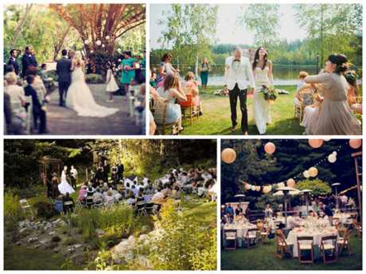 Летняя свадьба на открытом воздухе предполагает наличие фотозоны, игровой площадки и танцевальной.