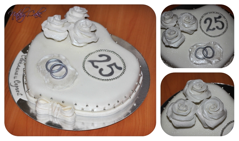 Можно с приколом обыграть само появление лакомства на празднике. Устроить небольшой конкурс для супругов, смешной блиц-опрос на темы семейного быта. И в качестве приза вынести торт-сюрприз, оформленный специально и именно для виновников торжества, проживших рука об руку двадцать пять лет.