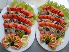 Желательно, чтоб уже к началу мероприятия на праздничном столе был широкий ассортимент холодных закуски различных напитков (соки, минеральная вода и алкоголь). Салаты могут уже быть на столе или же их могут подать чуть позже. Будет неплохо, если салаты разместят в маленькие мисочки. Желательно чтобы салаты были на любой вкус (мясные, с курицей или с грибами и пр.).