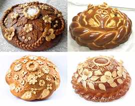 Намажьте каравай желтком для образования золотистой корочки отправьте в разогретую духовку. Печь в течение 70 минут при 180 градусах. После того, как каравай испекся, не следует его сразу доставать – оставьте его минут на 10-15 под фольгой при открытой дверце духовки.