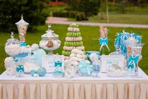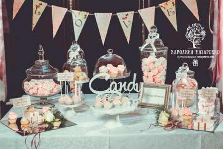 В Европе и Америке кенди–бар (candy bar) давно пользуется популярностью. Ни один праздник, а уж тем более свадьба, не проходит без сладкого стола. Дословно «candy bar» переводится, как конфетный стол или буфет. На современных свадьбах ему уделяют особое место и внимание. Под сладости ставят специальный стол или подставку, украшают ее в цветовой гамме и тематике свадьбы. Сладости сочетают по стилю, вкусу и цвету. Их раскладывают на тарелочки, в баночки, стаканчики, различные формочки, в пакетики, на подносы. Про сервировку стола пусть думают декораторы. Вам лишь нужно понимать несколько правил его оформления: за основу декора берут одну основную тематику и два – три оттенка свадьбы.