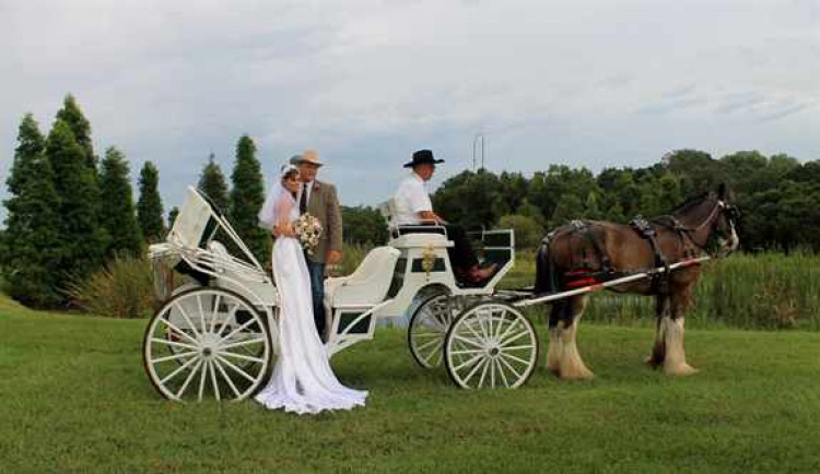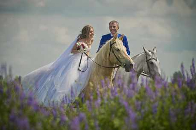 - Жених с невестой смогут почувствовать себя настоящими принцем и принцессой, приехав в карете, украшенной цветами и лентами, запряженной белыми статными лошадьми.