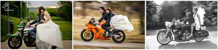 - Если пара жаждет скорости и обожает экстрим, тогда появление перед толпой приглашенных на мотоцикле будет идеальным вариантом. А еще это поможет сэкономить время в дороге, особенно в огромном мегаполисе.