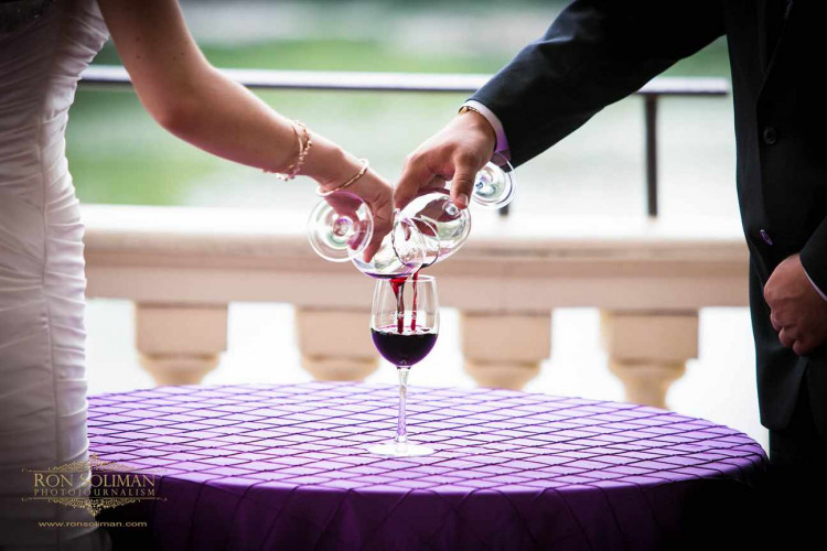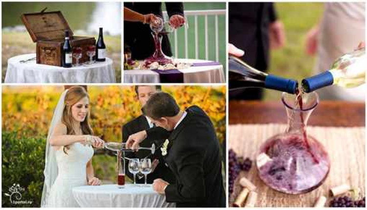 Так же как и песочная церемония, и церемония зажжения семейного очага, винная церемония несет в себе идею объединения двух компонентов в единое целое. Есть два варианта проведения винной церемонии.