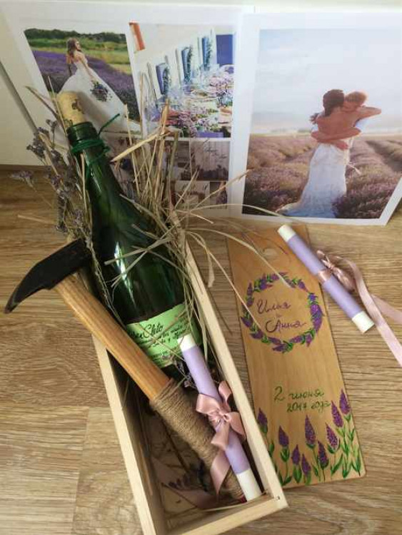 Суть церемонии очень проста. Вино предназначено для молодоженов – но когда их семье исполнится, к примеру, десять лет. Или когда их ребенку будет двадцать один год – дату нужно назначать и выбирать совместно. Отдельно пишутся письма, адресованные друг другу. Естественно, в них нужно написать что-то важное, теплое, искреннее. Письма вкладываются в конверты, которые запечатываются и отправляются к вину. Дальше наступает черед бумаги. Ее нужно нарезать на полосы шириной в полтора-два сантиметра, и на каждой полоске написать какое-то качество, характеризующее друг друга. Например: «Сильный», «Нежная», «Защитник», «Любимая». Потом с помощью линейки или ребра ножниц, свернуть в свободные спиральки. Эти спиральки насыпать в коробку, и уже на них сверху уложить бутылку вина, конверты, свечи и зажигалку, ну и штопор на всякий случай.