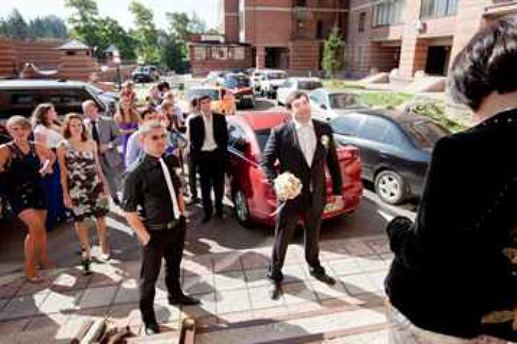 После легкого фуршета родители благословляют молодых, спускаются к машинам и отправляются в ЗАГС.